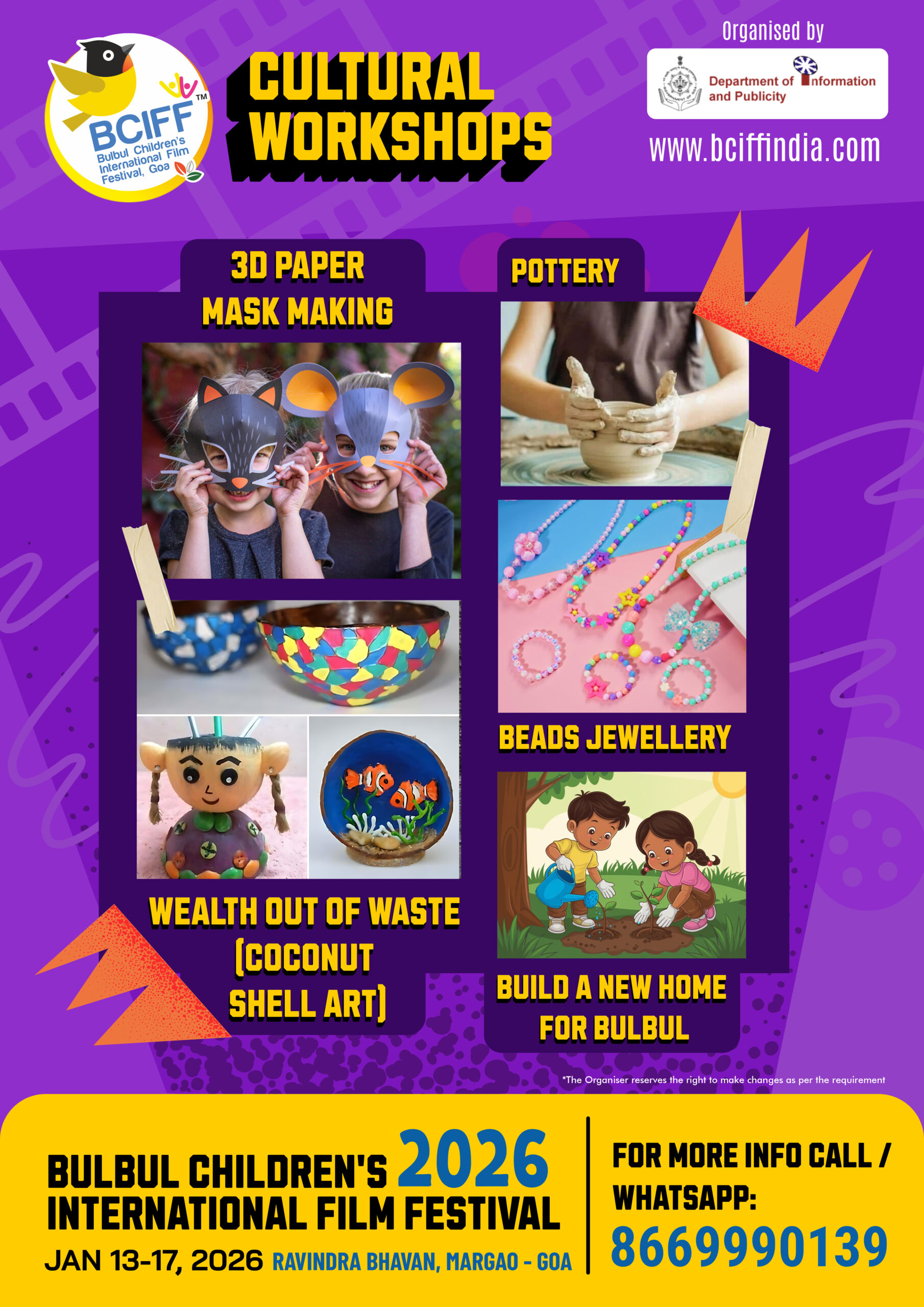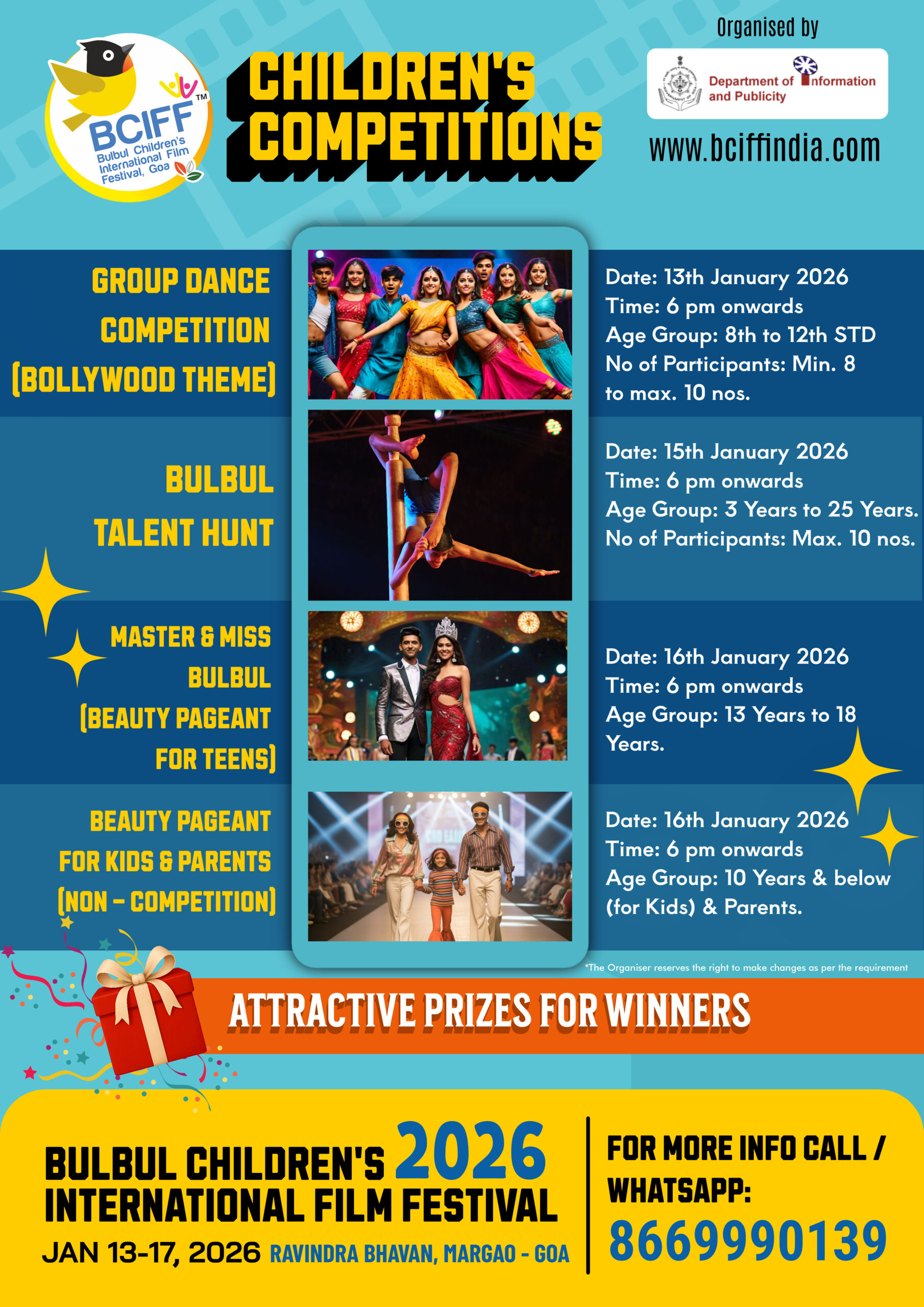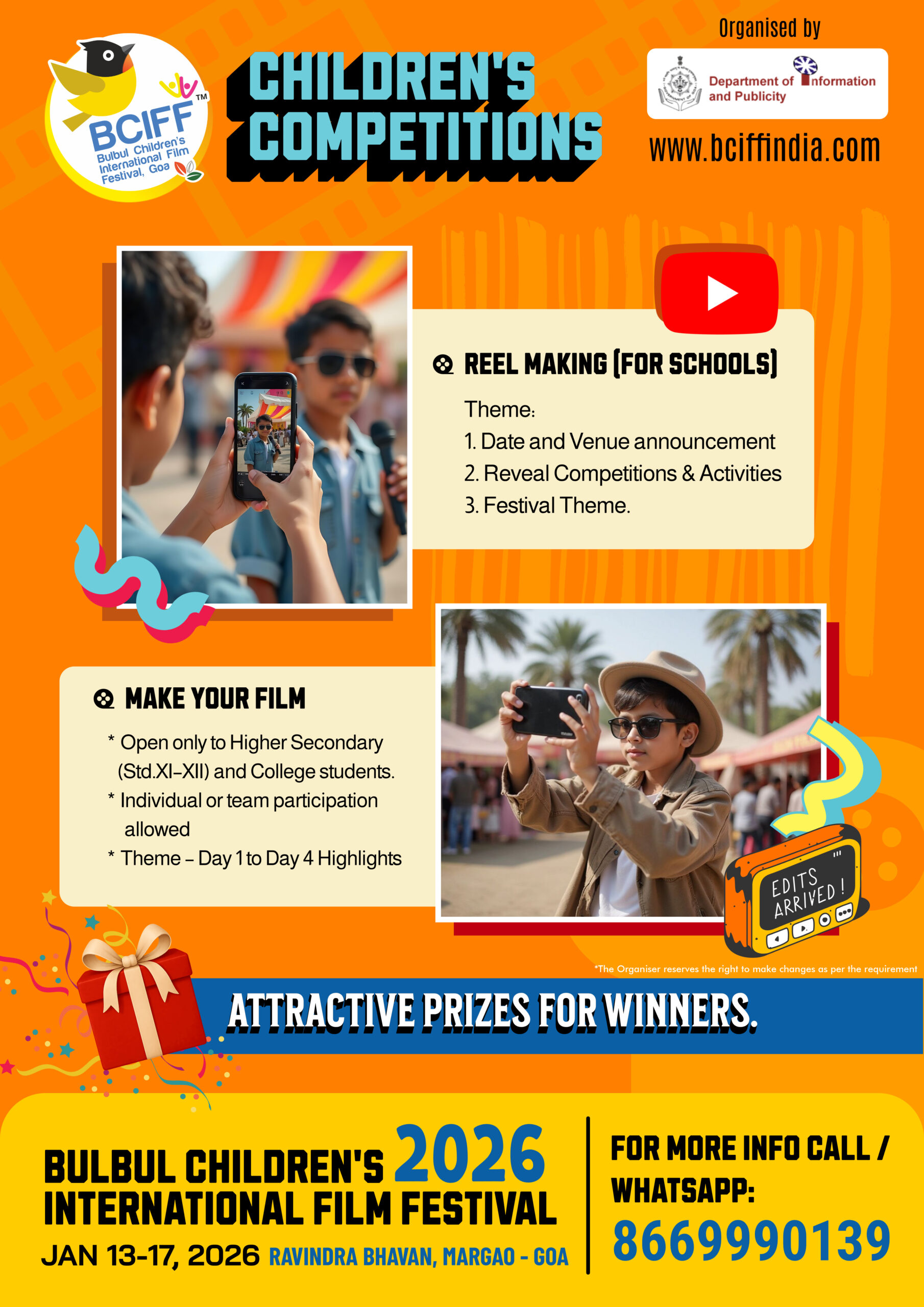 Following the tremendous response and enthusiastic participation of children in large numbers during its inaugural edition, the 2nd Edition of the Bulbul Children's International Film Festival (BCIFF) returns as a vibrant celebration of children's cinema. Organized by the Department of Information and Publicity, Government of Goa, BCIFF is dedicated to presenting imaginative and thought - provoking films for young audiences from around the world.