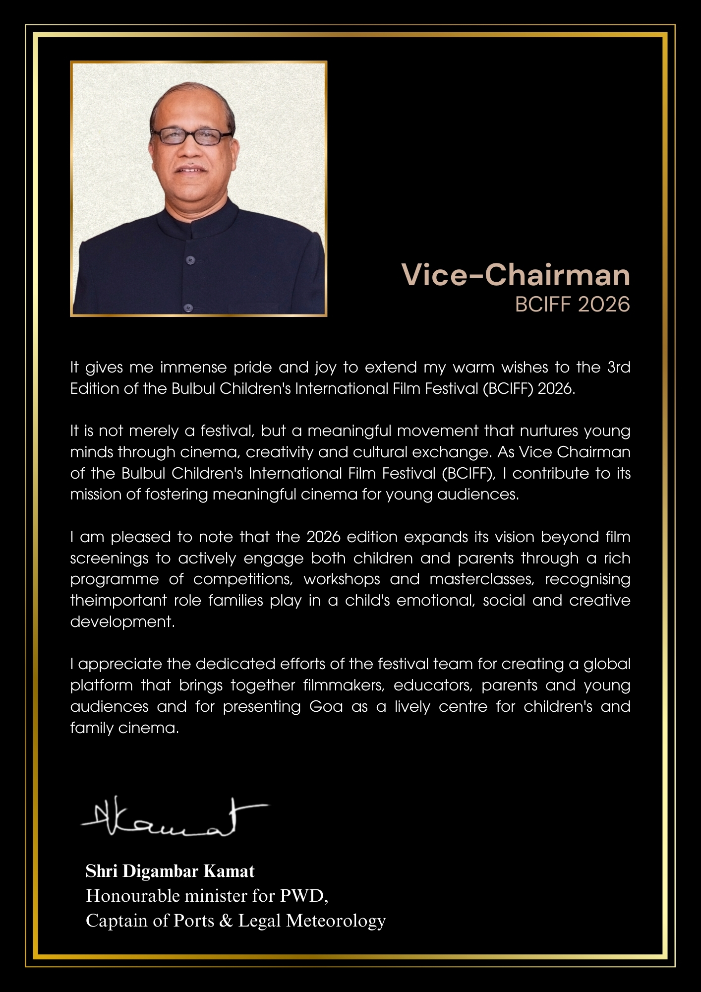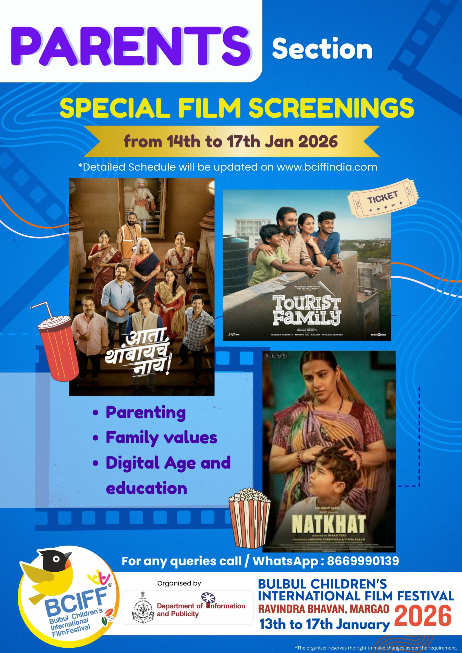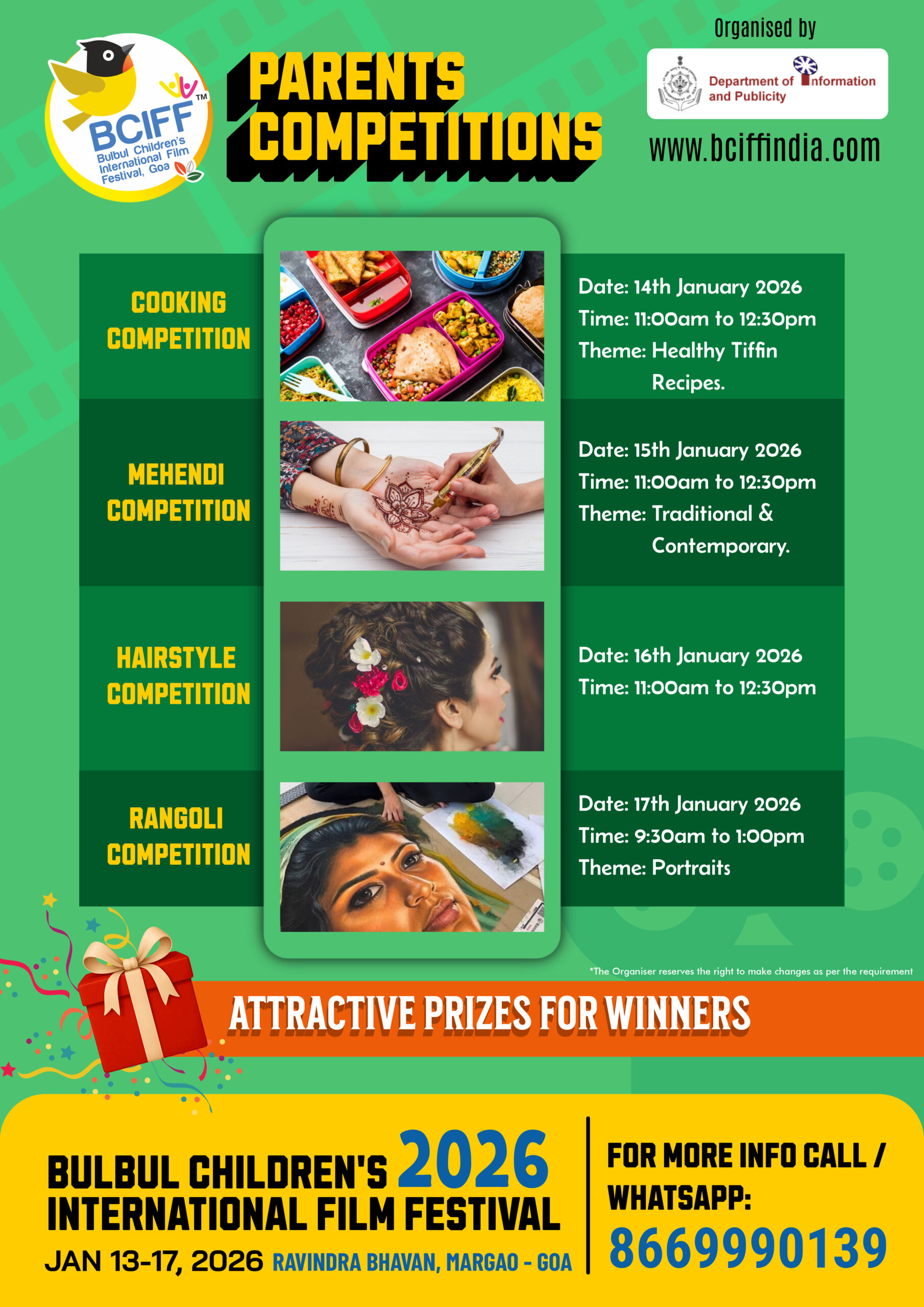 Following the tremendous response and enthusiastic participation of children in large numbers during its inaugural edition, the 2nd Edition of the Bulbul Children's International Film Festival (BCIFF) returns as a vibrant celebration of children's cinema. Organized by the Department of Information and Publicity, Government of Goa, BCIFF is dedicated to presenting imaginative and thought - provoking films for young audiences from around the world.
